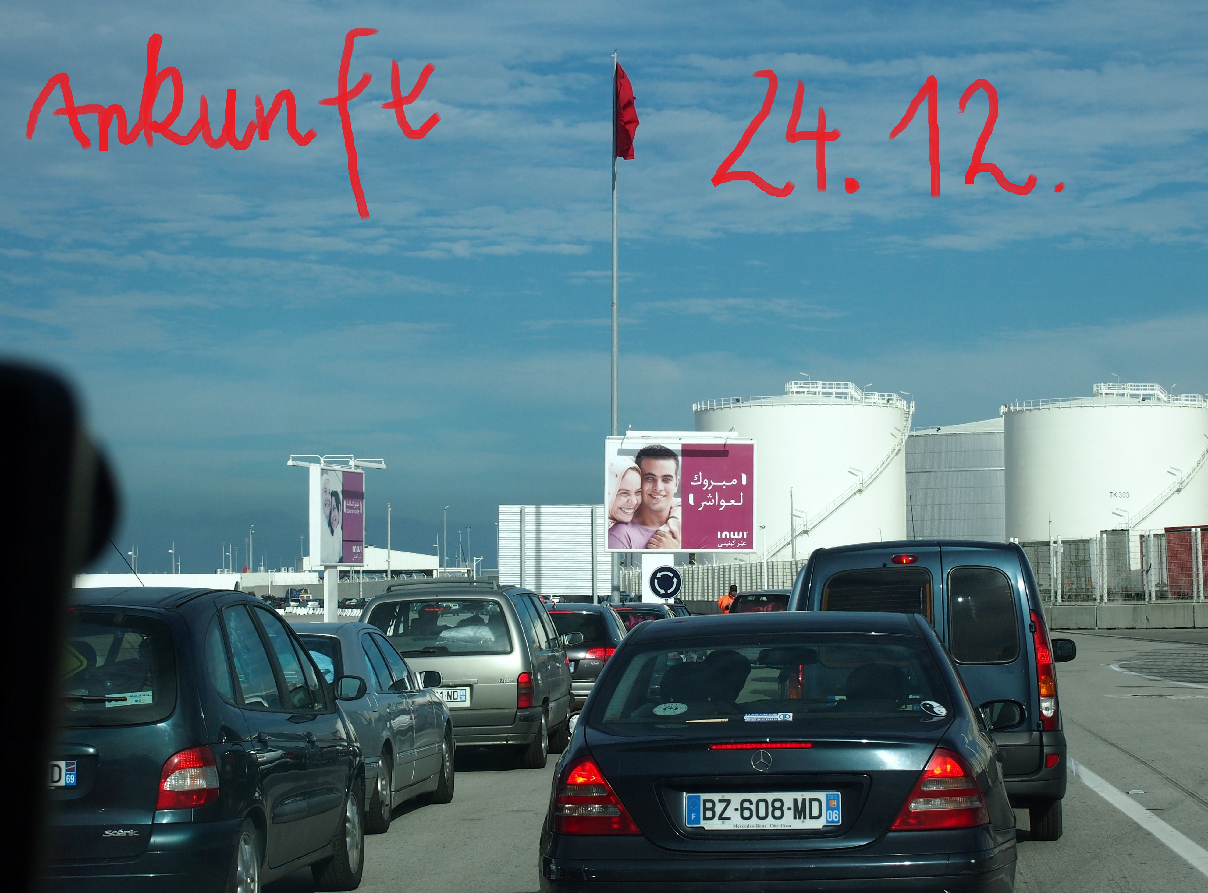 Das war im Dezember 2012 unsere Ankunft in Tanger Med. Drei Stunden dauert es, bis der Zoll uns abfertigt, es sind einfach zu viel Leute ,die über die Feiertage ihren Heimaturlaub hier antreten und zu wenig Personal.